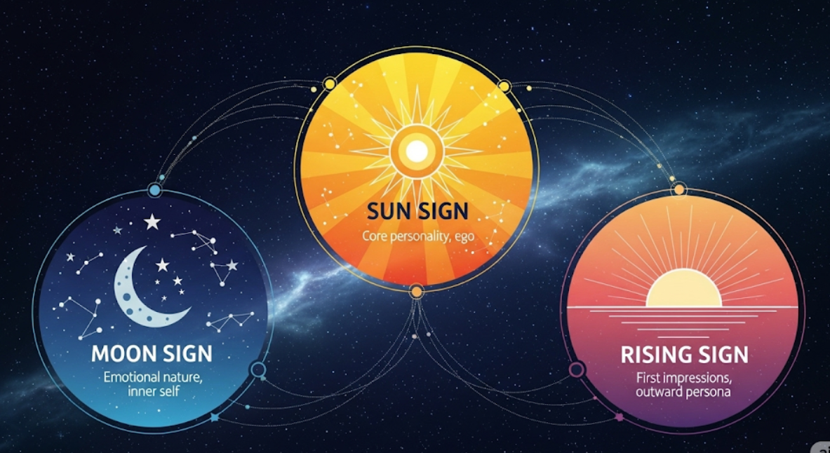 No matter if you are a naive novice or have been a casual follower of horoscopes for many years, this guide will uncover how these three mighty star signs influence your personality, love life and career future. In this article, by the end of it you will know your cosmic blueprint and how to use it in your life.